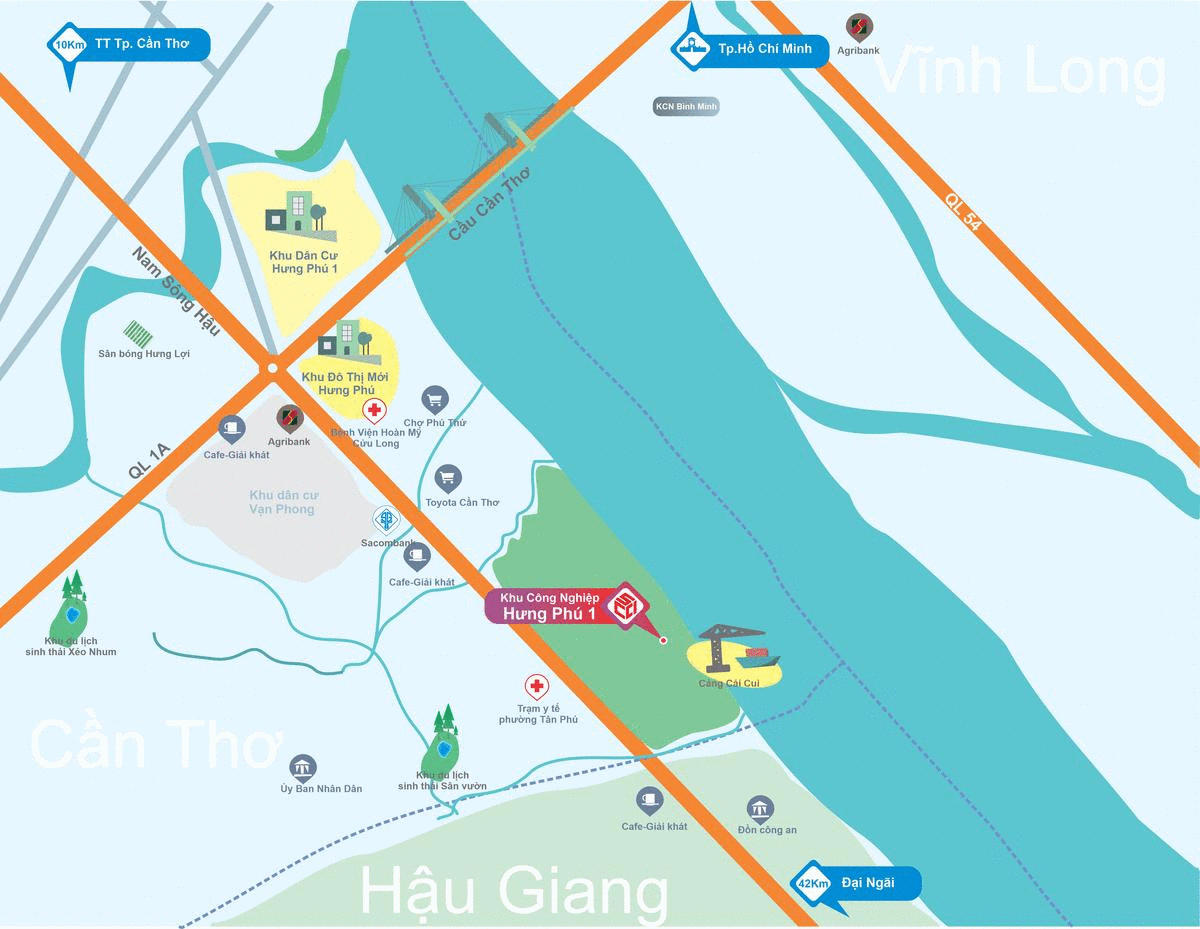 | Nhà xưởng cho thuê SCCI tại KCN Cần Thơ được kết nối với các đường giao thông trọng yếu như: QL 91C, QL 1A, đường Cao tốc Trung Lương – Cần Thơ đang trong gia đoạn hoàn thiện, tuyến đường sắt cao tốc Tp. HCM – Cần Thơ dự kiến xây dựng với ga đến liền kề KCN Hưng Phú 1. | |