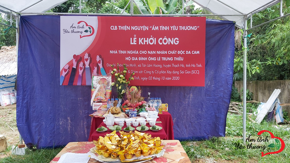 Sáng thứ Sáu, ngày 02/10/2020, tại thôn Văn Minh, xã Tân Lâm Hương, huyện Thạch Hà, tỉnh Hà Tĩnh, CLB thiện nguyện Ấm Tình Yêu Thương tổ chức khởi công xây "Nhà tình nghĩa cho nạn nhân chất độc màu da cam " cho gia đình ông Lê Trung Thiều. Gia đình ông Lê Trung Thiều thuộc hộ nghèo của thôn Văn Minh, xã Tân Lâm Hương, huyện Thạch Hà, tỉnh Hà Tĩnh. Bên cạnh hoàn cảnh gia đình khó khăn vì phải chăm sóc các con bị tâm thần, hiện cả gia đình 6 người đều chỉ sống nhờ vào lương hỗ trợ ít ỏi của nhà nước cho nạn nhân chất độc da cam.