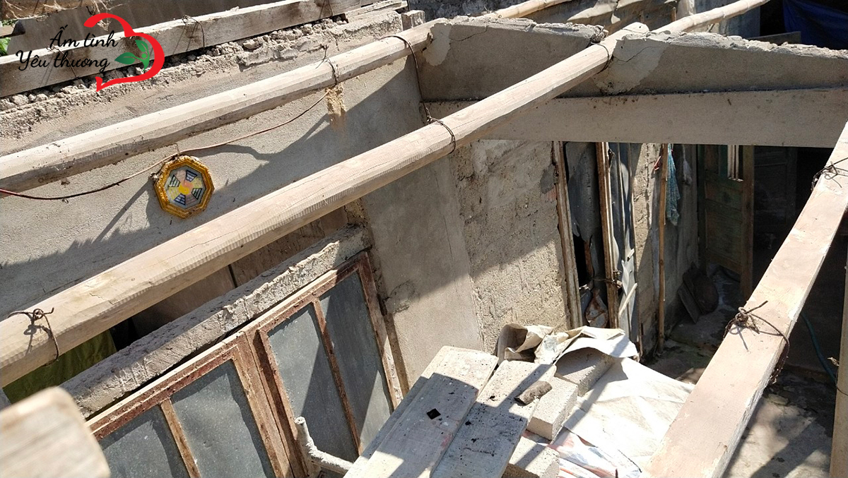 Tình trạng căn nhà bà Nâu ọp ẹp, xiêu vẹo, chỗ dột chỗ rách, ẩm mốc hư hại nghiêm trọng, có nguy cơ sập xuống bất cứ lúc nào.