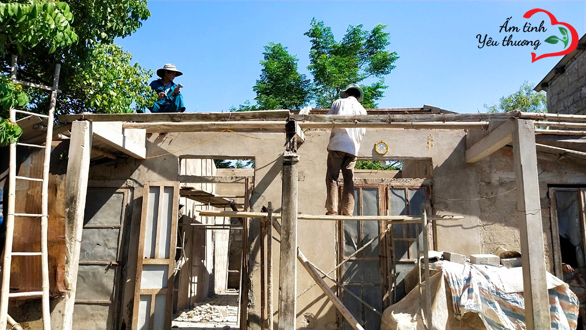 Căn nhà tình nghĩa mà gia đình bà Nâu được trao tặng bởi CLB thiện nguyện Ấm Tình Yêu Thương khởi công vào sáng thứ Ba ngày 18/08/2020 đang được đốc thúc hoàn thành nhanh chóng để giúp cho gia đình bà Nâu sớm được xây lại căn nhà vững vàng, kiên cố để ổn định cuộc sống.
