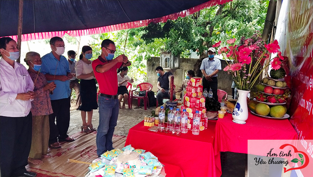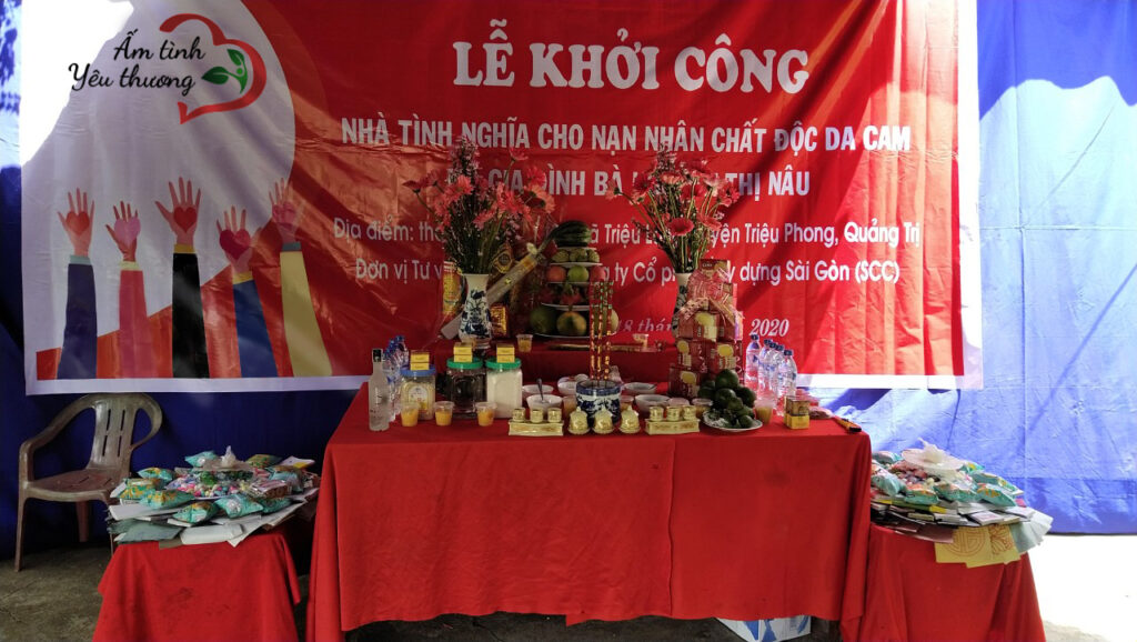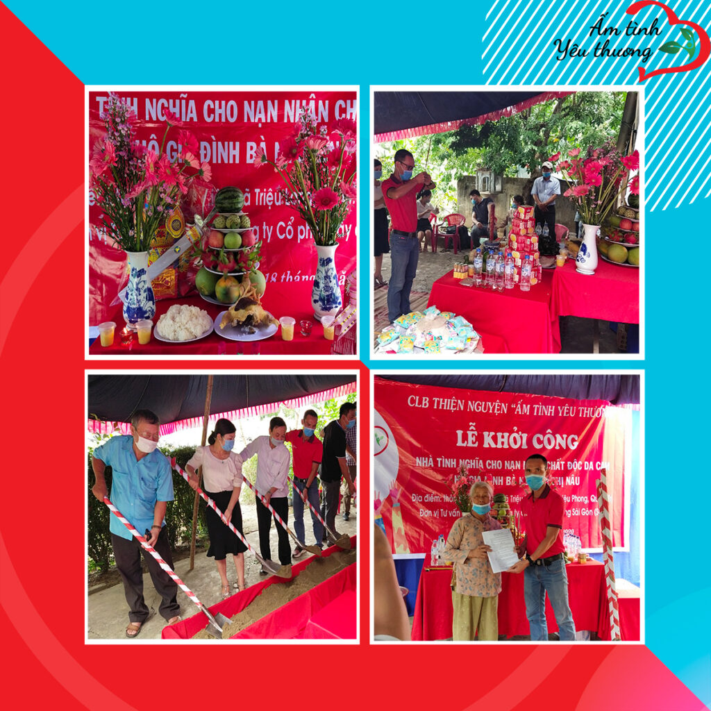 Sáng thứ Ba ngày 18/08/2020, tại thôn Bích Lộc Triêu, xã Triệu Long, huyện Triệu Phong, tỉnh Quảng Trị, CLB thiện nguyện Ấm Tình Yêu Thương tổ chức khởi công xây "Nhà tình nghĩa cho nạn nhân chất độc màu da cam " cho gia đình bà Nguyễn Thị Nâu, là hộ gia đình nạn nhân chất độc màu da cam khó khăn, bất hạnh vào bậc nhất của thôn xã nghèo này.