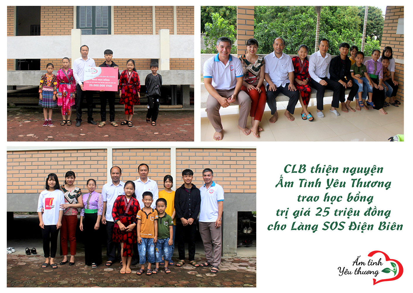 Nhắc đến hai ngôi làng ở Điện Biên và Thanh Hoá, điều chung nhất có thể nhận thấy chính là bên cạnh sự thiếu thốn và hoàn cảnh chung mà những ngôi làng SOS cưu mang, thì ở 2 khu vực này còn khó khăn, thiếu thốn hơn gấp bội bởi sự nghèo khó của vùng sâu vùng xa. Mặc dù khó khăn chồng chất nhưng hai ngôi làng tại hai tỉnh nghèo đã luôn mẫu mực, hăng say đi đầu trong các hoạt động. Vì vậy, CLB thiện nguyện Ấm Tình Yêu Thương đặc biệt gửi tặng 10 suất học bổng trị giá 50 triệu đồng hỗ trợ các em đợt này là “Làng trẻ em SOS Điện Biên Phủ”, tỉnh Điện Biên và “Làng trẻ em SOS Thanh Hoá”, tỉnh Thanh Hoá.