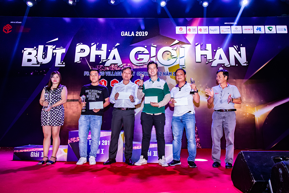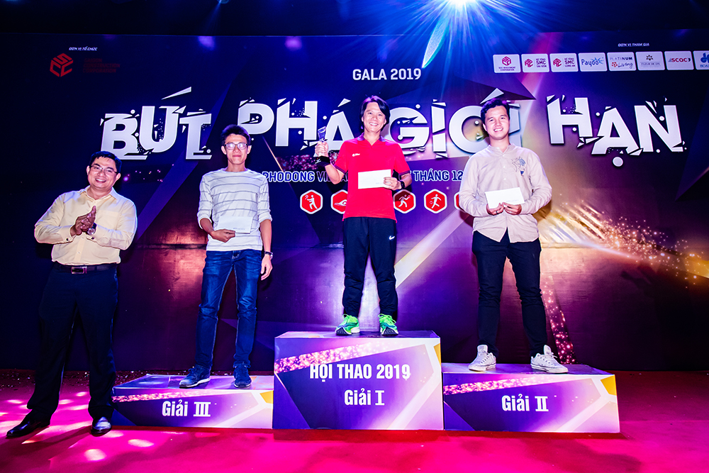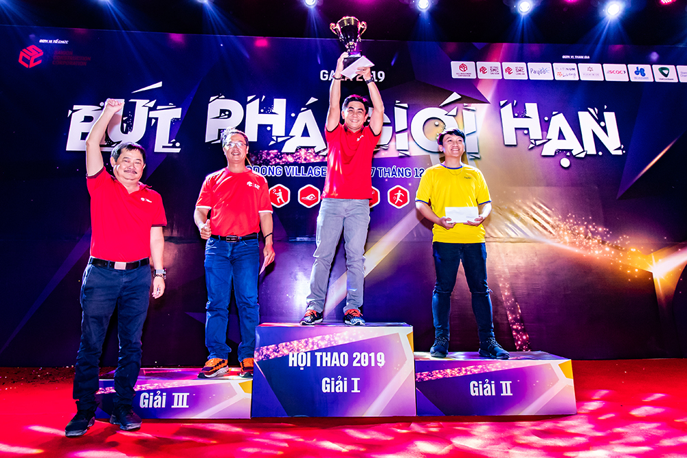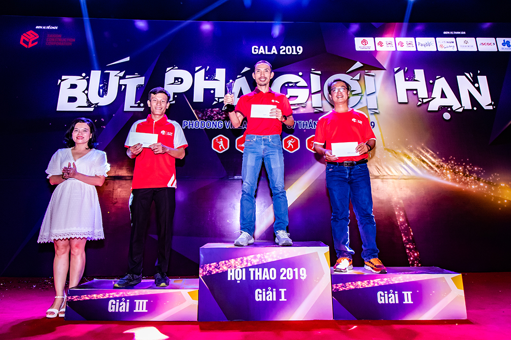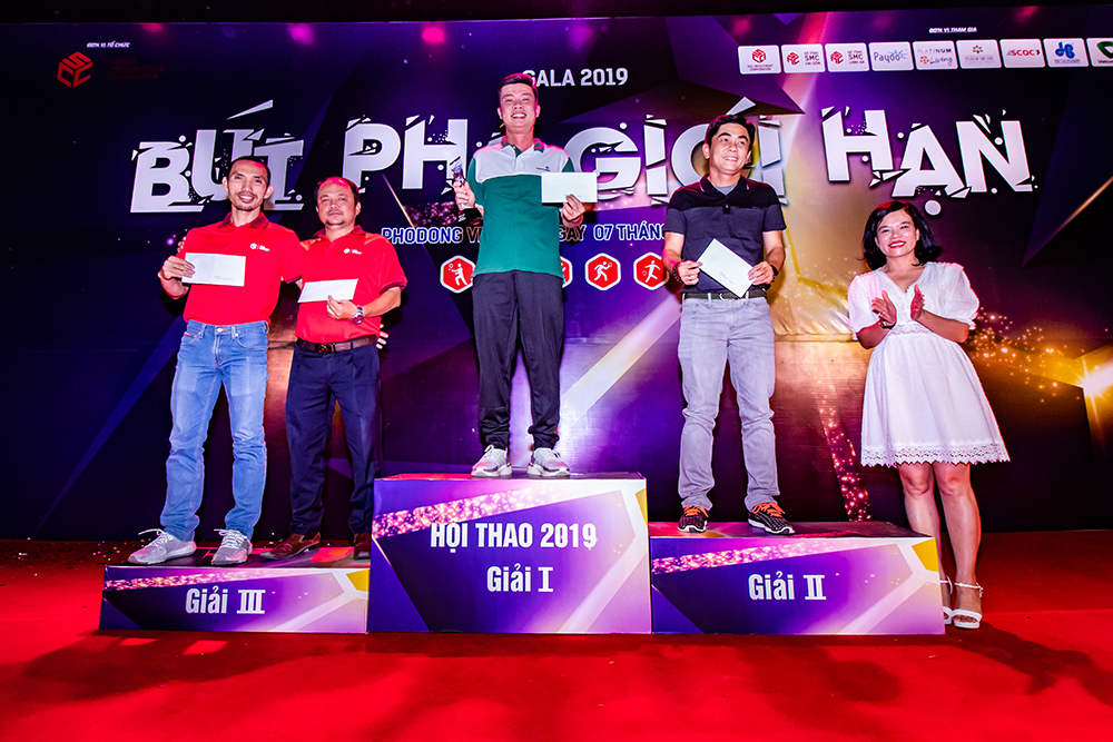 Anh Nguyễn Thành Vinh trao giải Nhất, Nhì, Ba toàn đoàn cho đại diện các công ty: SCC, VietUnion, SMC Sài Gòn.