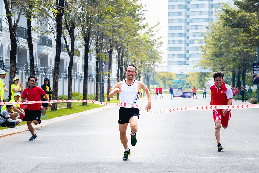 Anh Phạm Văn Nghĩa – Phó Tổng Giám đốc Công ty SMC Sài Gòn trao giải thưởng cho các VĐV nữ xuất sắc nhất nội dung đơn nữ Điền kinh – cự ly 5.000m: giải Nhất - chị Nguyễn Nhật Trúc Hà (SCCI), giải Nhì - chị Trần Thị Hiền (SCC), giải Ba - chị Nguyễn Thị Kim Hồng (SCC).