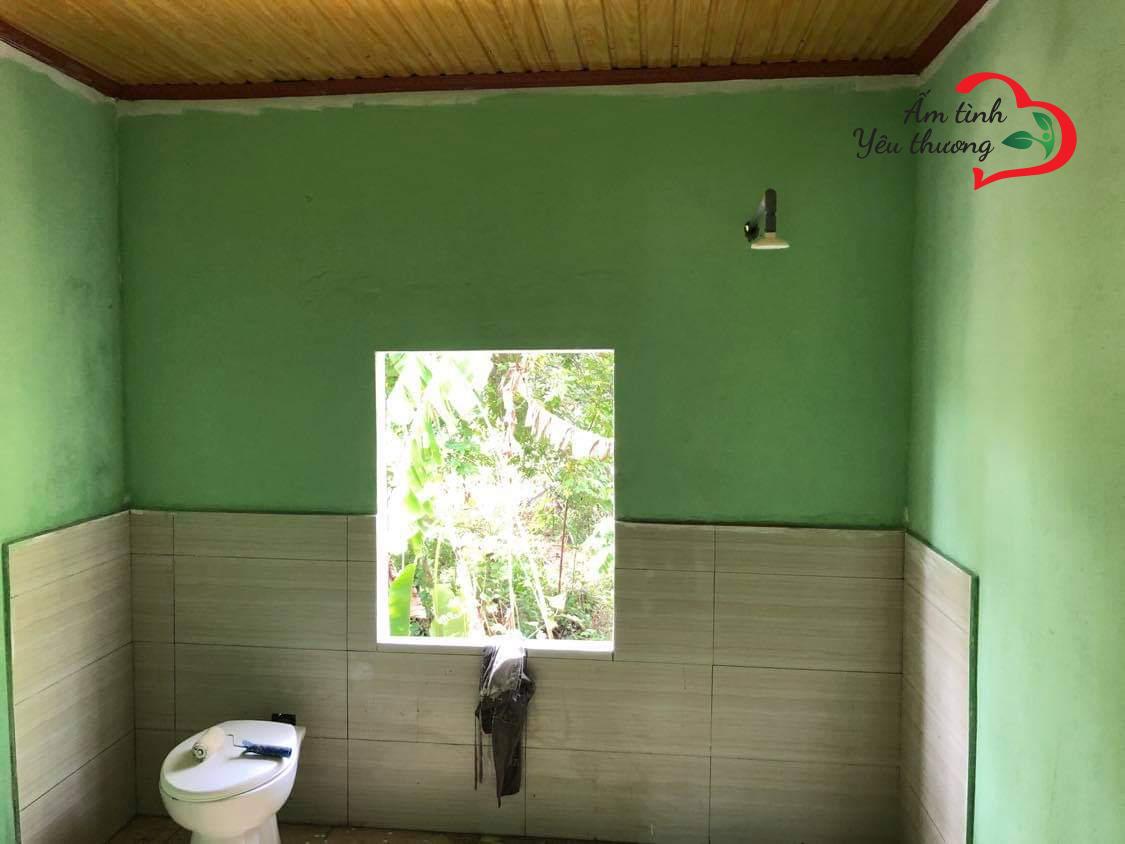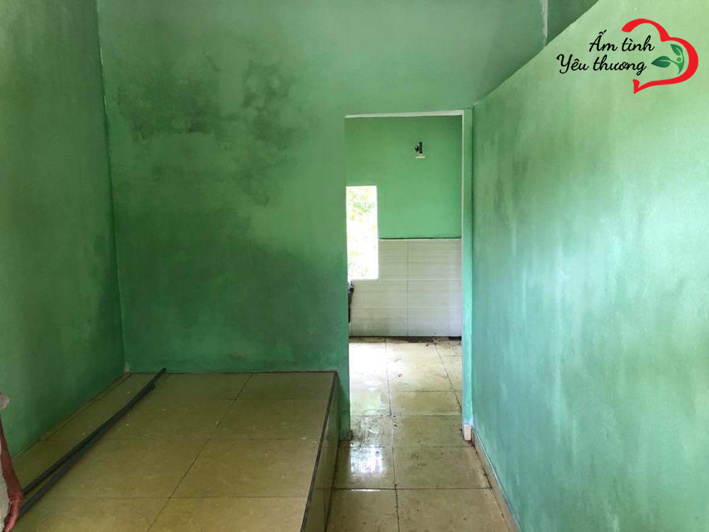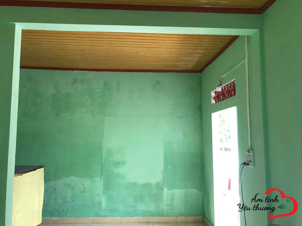 Tình trạng căn nhà ọp ẹp, xiêu vẹo, chỗ dột chỗ rách, ẩm mốc hư hại nghiêm trọng ban đầu đã được thay thế bởi tường vôi mới cứng và gạch lót sạch sẽ.