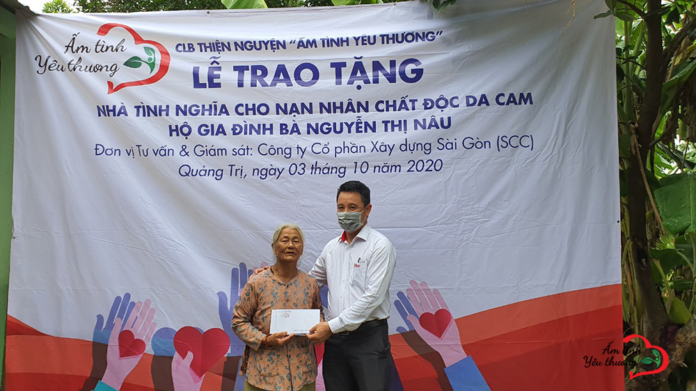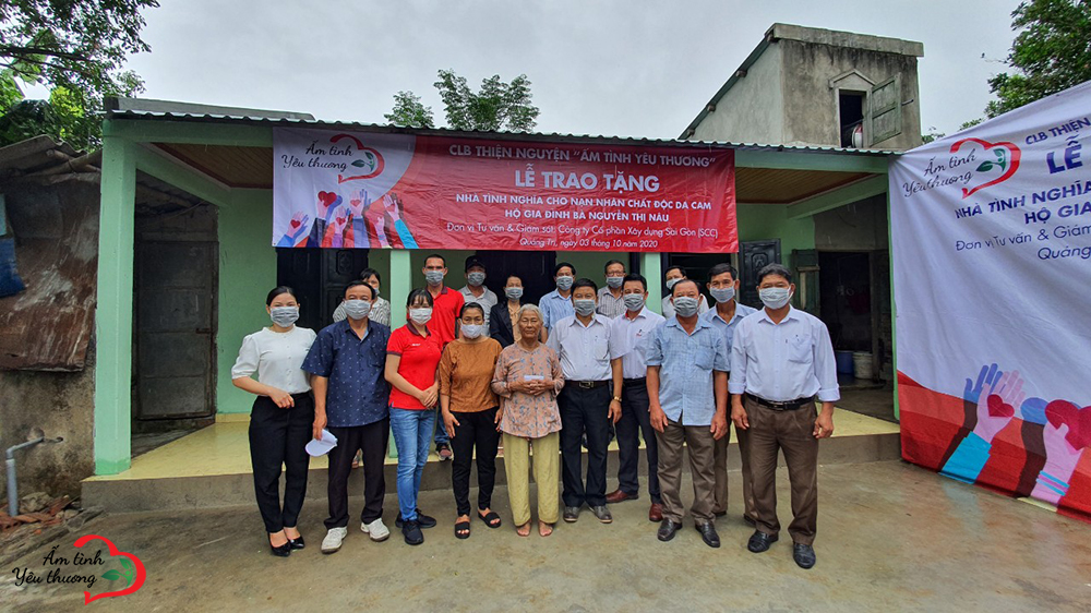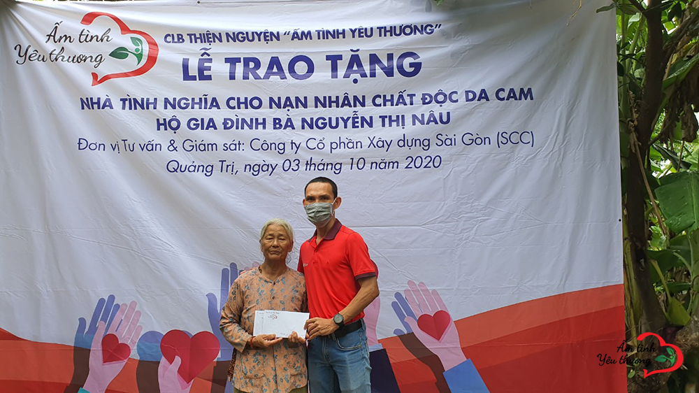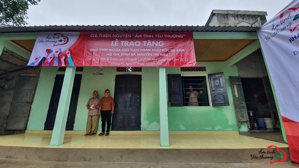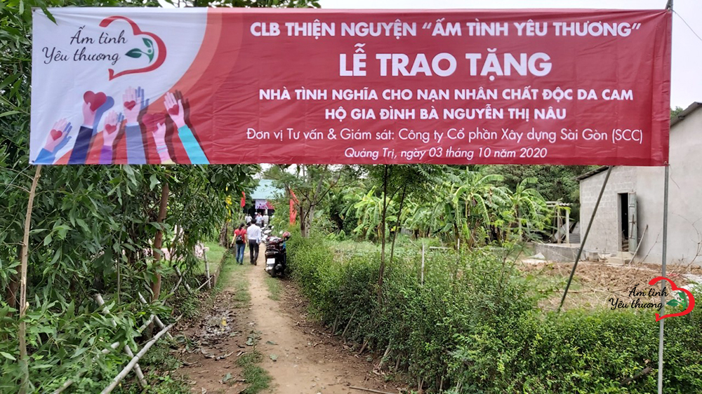 Sáng ngày 03/10/2020, tại thôn Bích Lộc Triêu, xã Triệu Long, huyện Triệu Phong, tỉnh Quảng Trị, CLB thiện nguyện Ấm Tình Yêu Thương tiến hành trao tặng và đưa vào sử dụng căn nhà tình nghĩa cho gia đình bà Nguyễn Thị Nâu, là hộ gia đình nạn nhân chất độc màu da cam khó khăn, bất hạnh vào bậc nhất của thôn xã nghèo này.