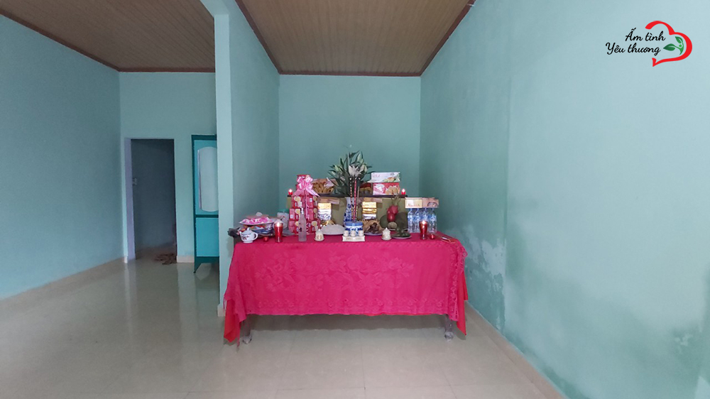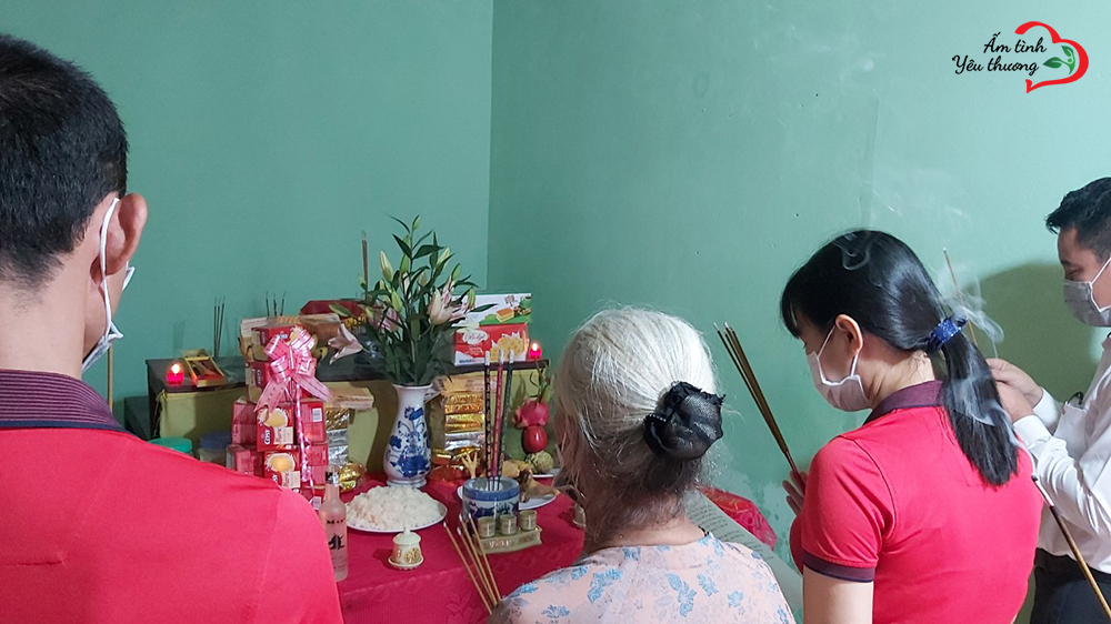 Đại diện CLB cùng bà Nguyễn Thị Nâu thắp hương tân gia đơn giản cho căn nhà tình nghĩa.