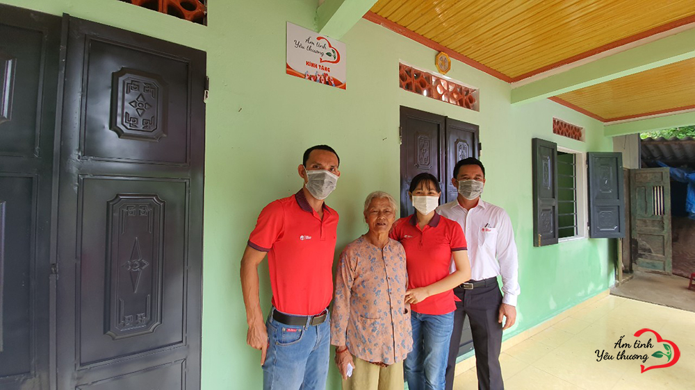 Gia đình bà Nâu là gia đình đầu tiên nhận được căn nhà tình nghĩa của chương trình “XÂY NHÀ CHO NẠN NHÂN CHẤT ĐỘC DA CAM 2020”.