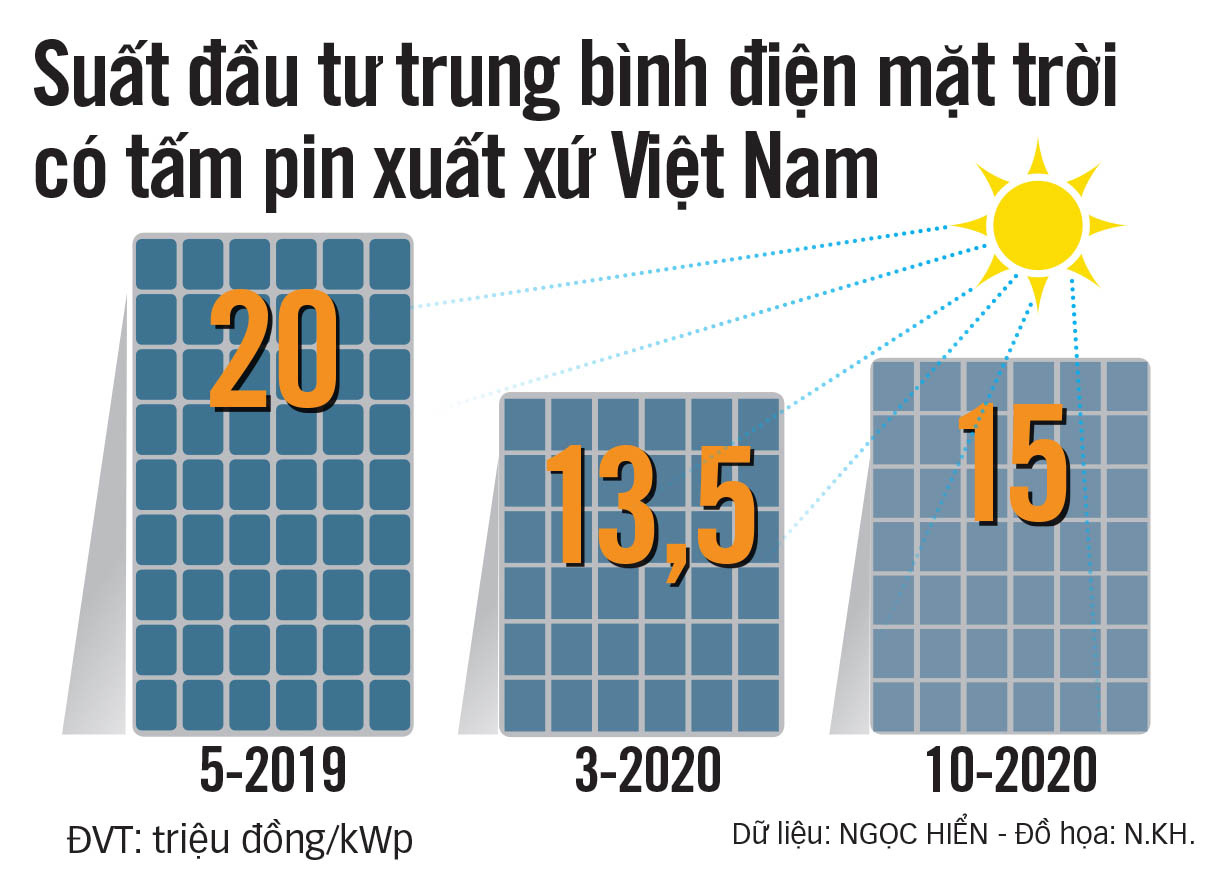 Ông Vũ Đình Khánh - giám đốc Công ty TNHH đầu tư và phát triển năng lượng HIGG - cho biết giá pin của nhiều hãng không những tăng 10-15%, khan hiếm hàng mà còn trễ tiến độ giao hàng và dự báo vẫn còn tiếp tục tăng giá. Trung bình mỗi MW doanh nghiệp bỏ ra khoảng 12 tỉ đồng đầu tư, với mức tăng hiện nay doanh nghiệp phải bỏ thêm từ 1,2-1,8 tỉ đồng, tổng chi phí sẽ tăng lên nhiều hơn so với trước đây khiến thời gian thu hồi vốn chậm hơn.