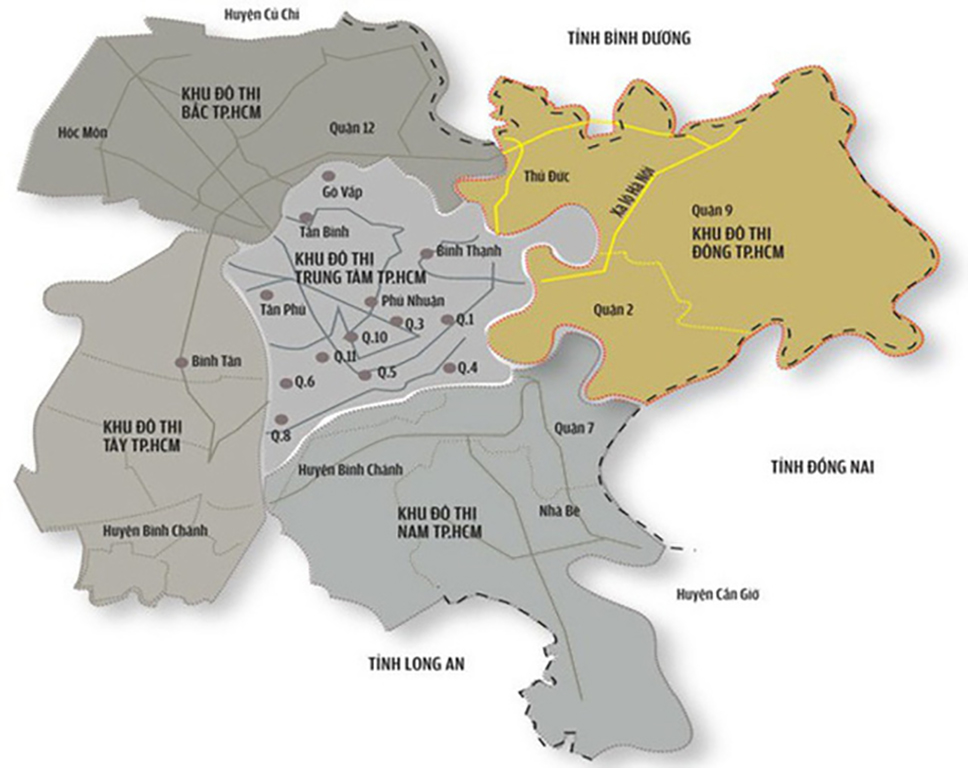 Hiện Tp.HCM đang xin Trung ương sáp nhập 3 quận gồm Quận 2, Quận 9 và Quận Thủ Đức để thành lập thành phố phía Đông với quy mô hơn 1,1 triệu dân, được bố trí trên tổng diện tích tự nhiên hơn 211 km2. Đề xuất này được Thủ tướng cùng các bộ, ngành trung ương ủng hộ.