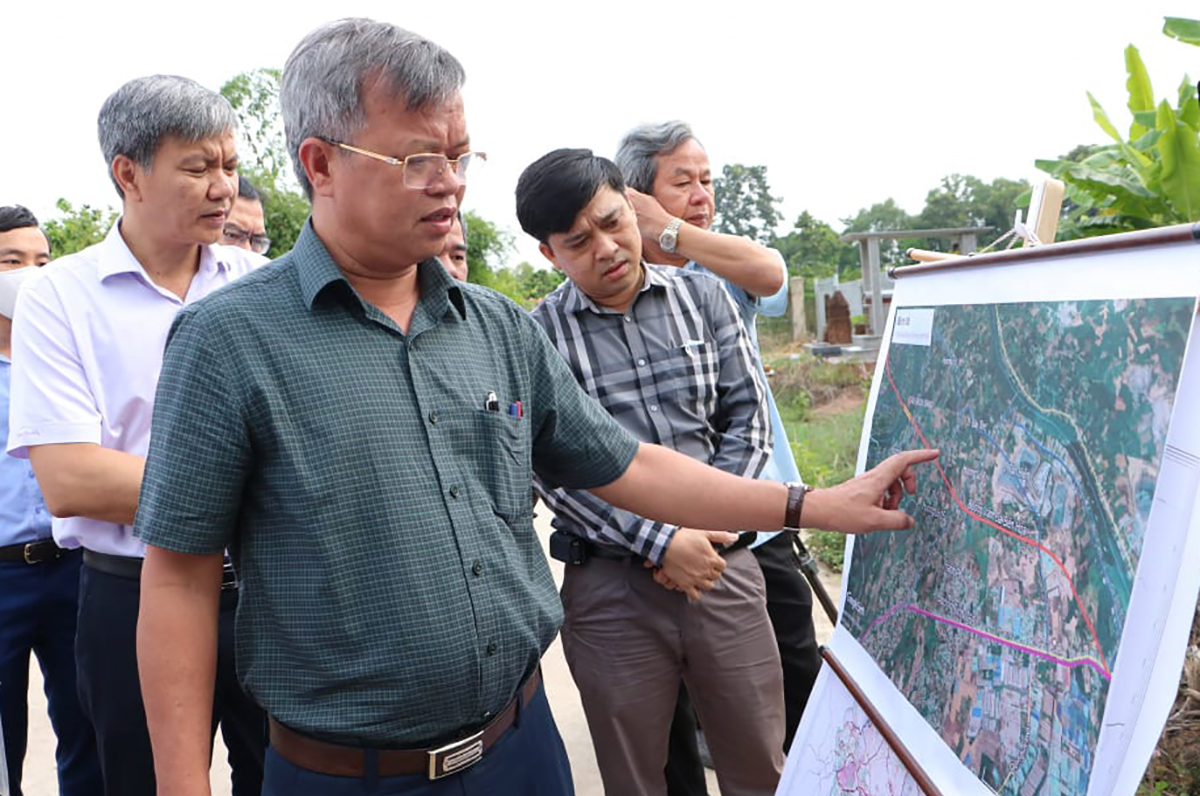 Ông Cao Tiến Dũng (đeo kính), Chủ tịch UBND Đồng Nai thị sát nơi xây cầu Bạch Đằng nối với tỉnh Bình Dương hồi tháng 5. Ảnh: Thái Hà.Dự án được đưa vào sử dụng sẽ giúp kết nối giao thương các khu công nghiệp phía thị xã Tân Uyên, Bắc Tân Uyên (Bình Dương) với TP Biên Hòa, huyện Vĩnh Cửu và Trảng Bom (Đồng Nai).